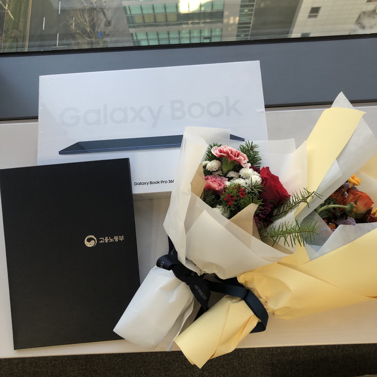 1, 2학기를 모두 마친 교육생에겐 수료할 수 있는 기회를 준다. 나는 수료식에 오프라인으로 참여했었는데, 생각지도 못한 상을 받게 되어 너무 감사했다. 정말 같이 했던 팀원들이 너무 열심히 해줬기에 받을 수 있는 상이 아니었나 싶다. (진짜 모두에게 너무너무 고맙다ㅠㅠ) 상을 받은 사람들에게는 소정의 상품을 주는데, 나는 갤럭시 북을 받았다.